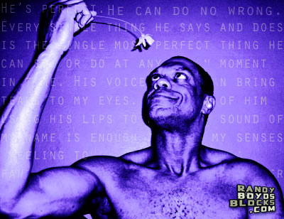 “He’s perfect. He can do no wrong. Every single thing he says and does is the single most perfect thing he can say or do at any given moment in time. His voice alone can bring tears to my eyes. The idea of him using his lips to form the sound of my name is enough to send my senses reeling toward the stars on a fantastic voyage from which I never want to descend. And stuff like that there. You feel me?”